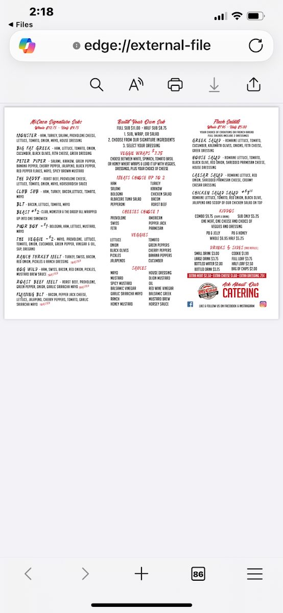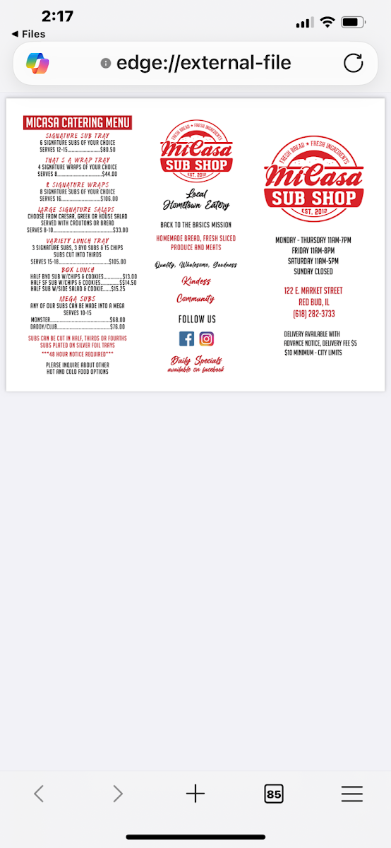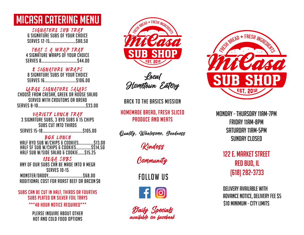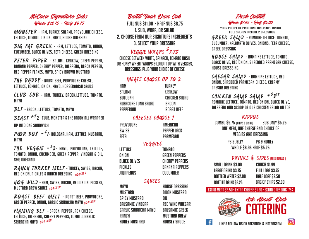 Micasa Catering Menu
